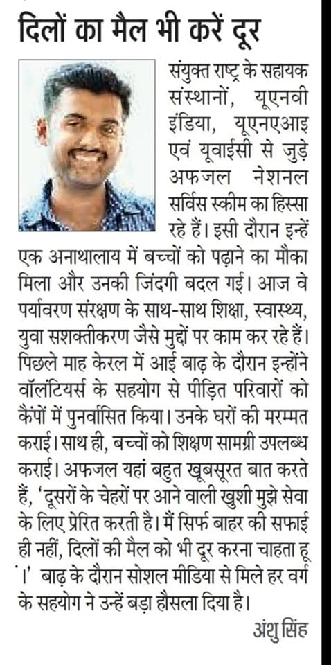 As part of his continued learning and contribution to the volunteer ecosystem, Afsal undertook an “Experimental Volunteering Journey” across India, travelling independently to meet, appreciate, and document the efforts of grassroots volunteers. Through this journey, he has travelled across 20+ Indian states, celebrating everyday changemakers and strengthening India’s culture of volunteerism. These experiences led him to author a Malayalam book titled “മനുഷ്യരിലേക്ക്! – A Journey by captainafsal”, and a practical handbook, “An Introduction to Volunteerism in India.”